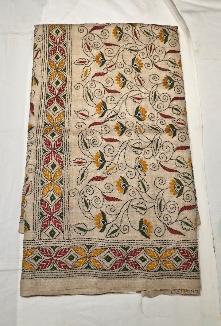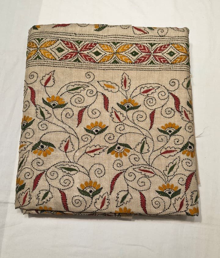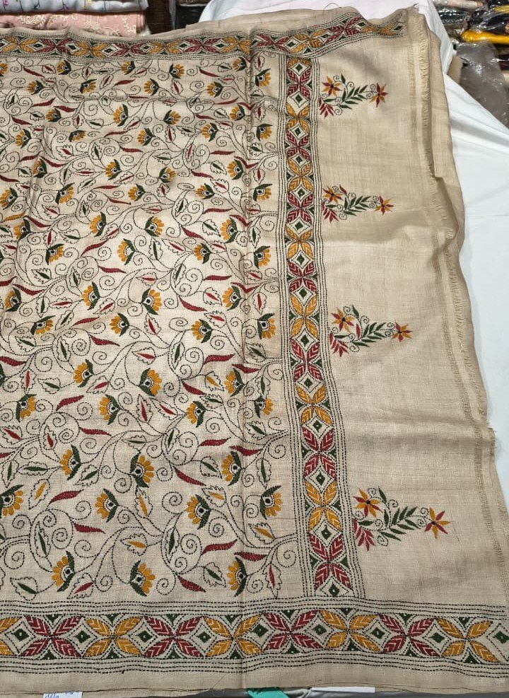 This Premium Tassar Silk Sindhi Work Saree is a perfect blend of traditional craftsmanship and timeless elegance. Crafted from rich Tassar silk fabric, the saree features beautifully detailed Sindhi-inspired handcrafted motifs spread across the body, giving it a unique ethnic identity and artisanal charm.