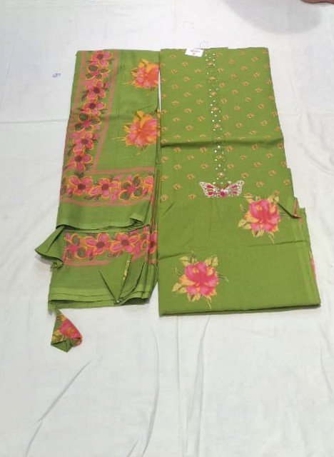 Be the first to review “Pure All Cotton Suit Set with Printed Cotton Dupatta and Cotton Bottom Elegant Embroidered Unstitched Dress Material”