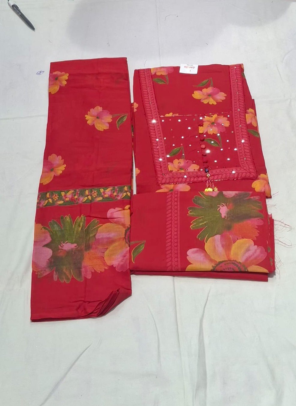 Be the first to review “Pure All Cotton Suit Set with Printed Cotton Dupatta and Cotton Bottom Elegant Embroidered Unstitched Dress Material”