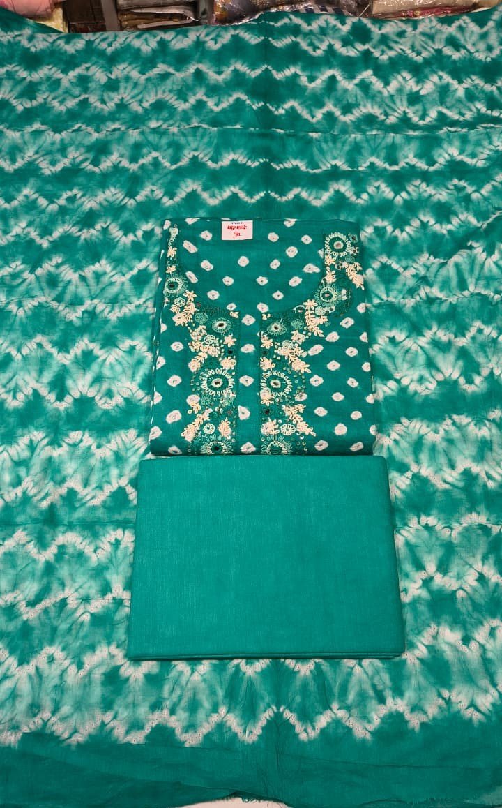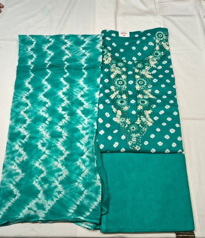 Be the first to review “Pure Cotton Bandhej Printed Suit Set with Shibori Dupatta and Cotton Bottom Elegant Ethnic Wear”
