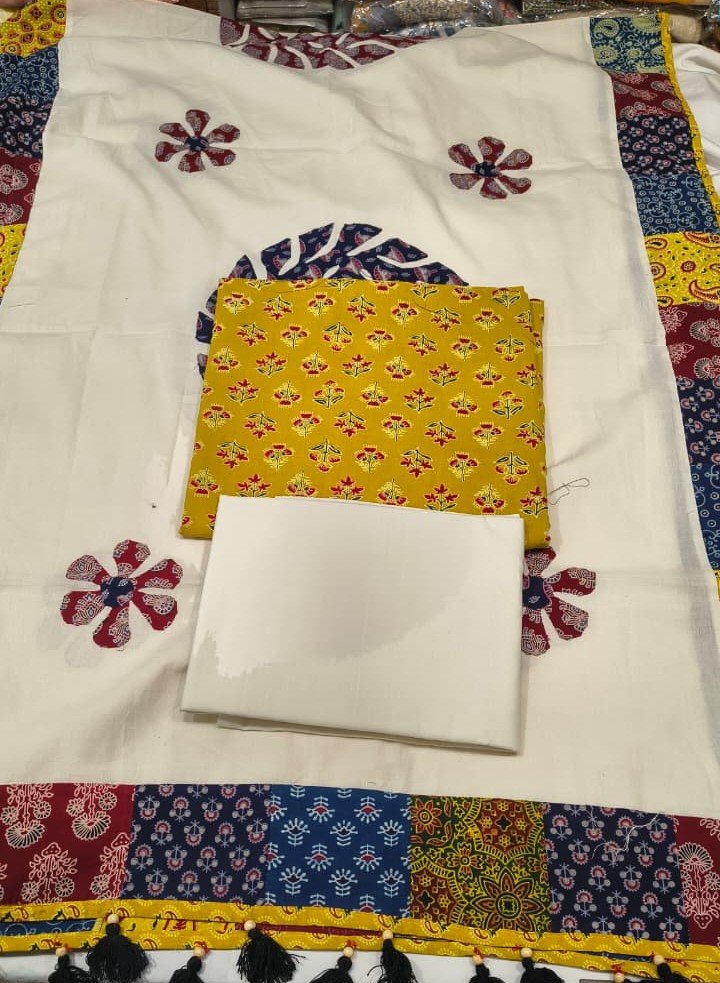 Pure Cotton Suit Set with Pure Cotton Patch Work Dupatta and Cotton Bottom Elegant Ethnic Wear
