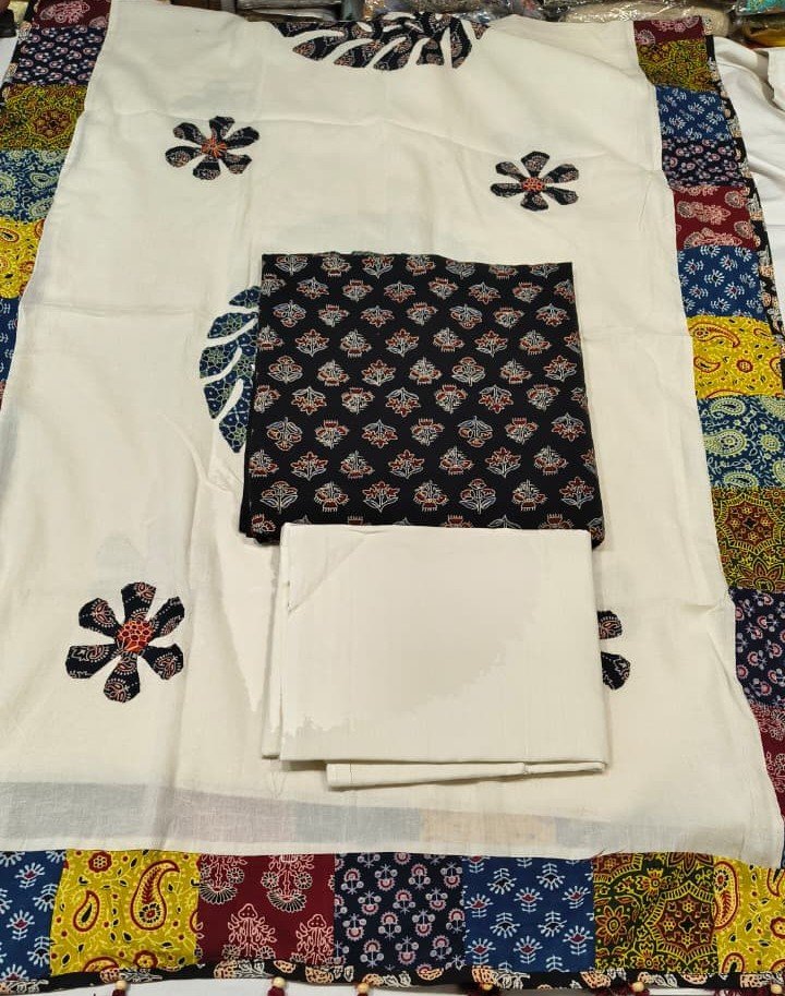 Pure Cotton Suit Set with Pure Cotton Patch Work Dupatta and Cotton Bottom Elegant Ethnic Wear