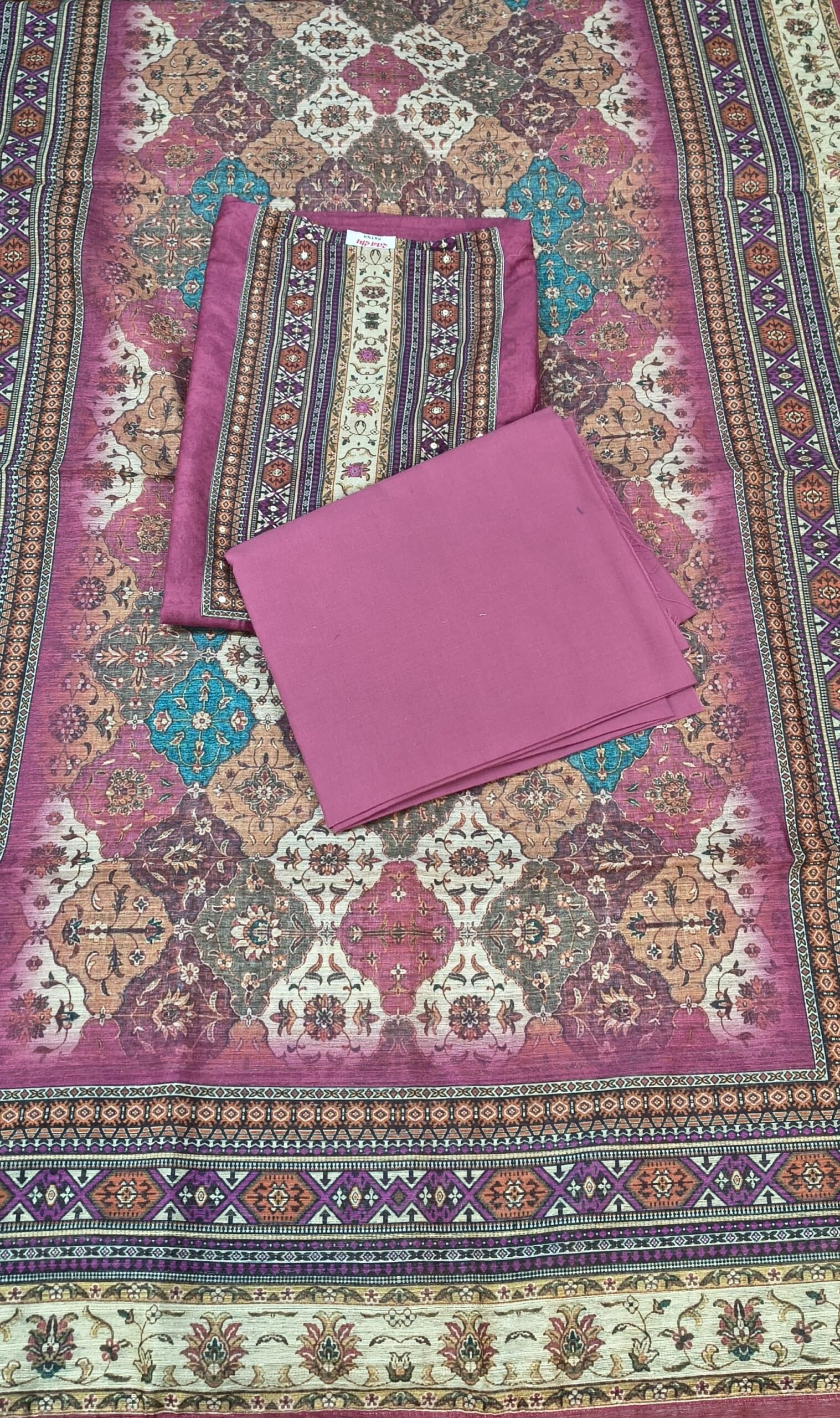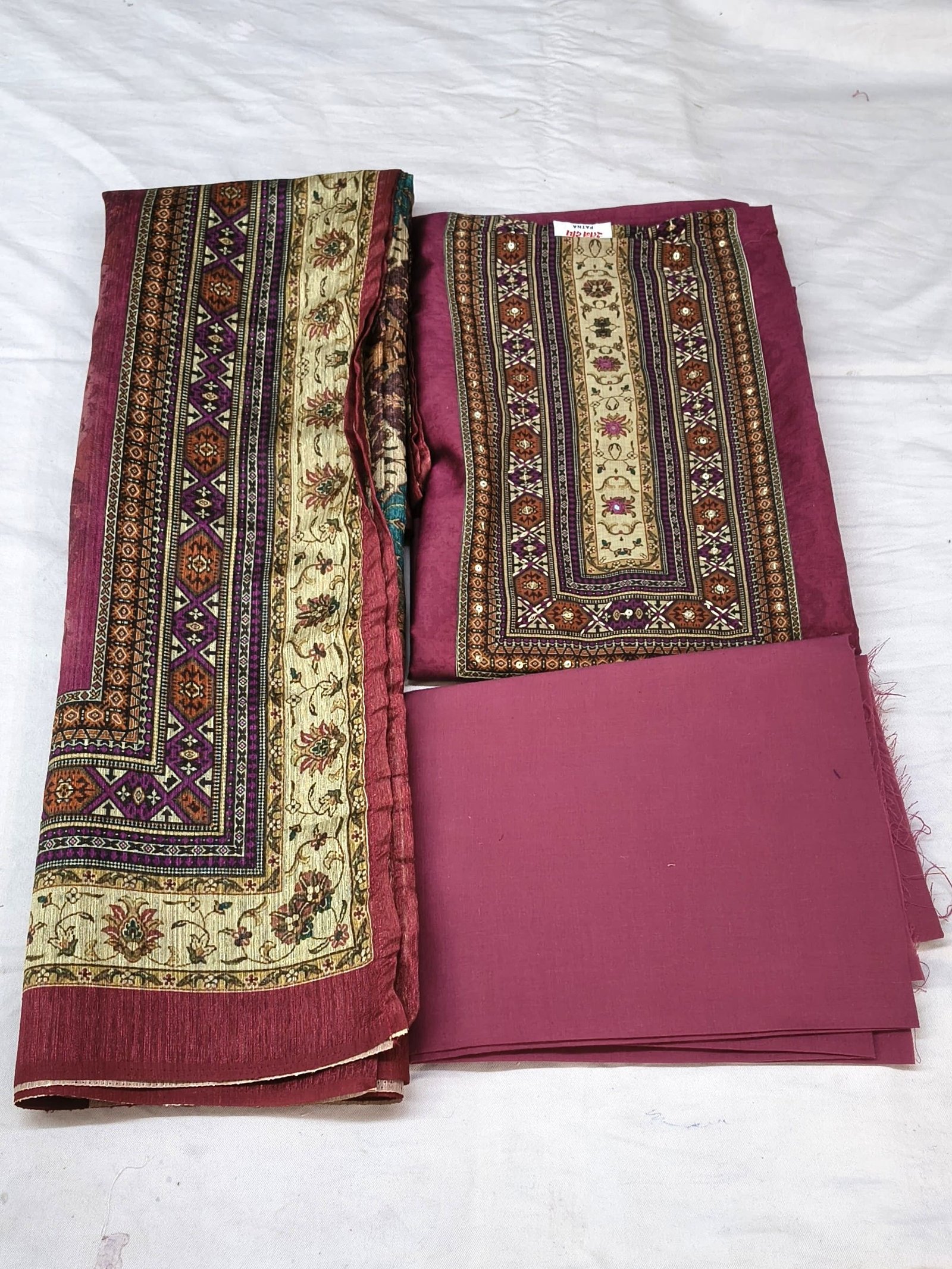 Be the first to review “Stylish Cotton Chanderi Suit with Printed Dupatta and Cotton Bottom – 3 Piece Unstitched Set”