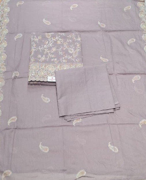 Pure All Cotton Suit Set with Printed Cotton Dupatta and Cotton Bottom Elegant Embroidered Unstitched Dress Material