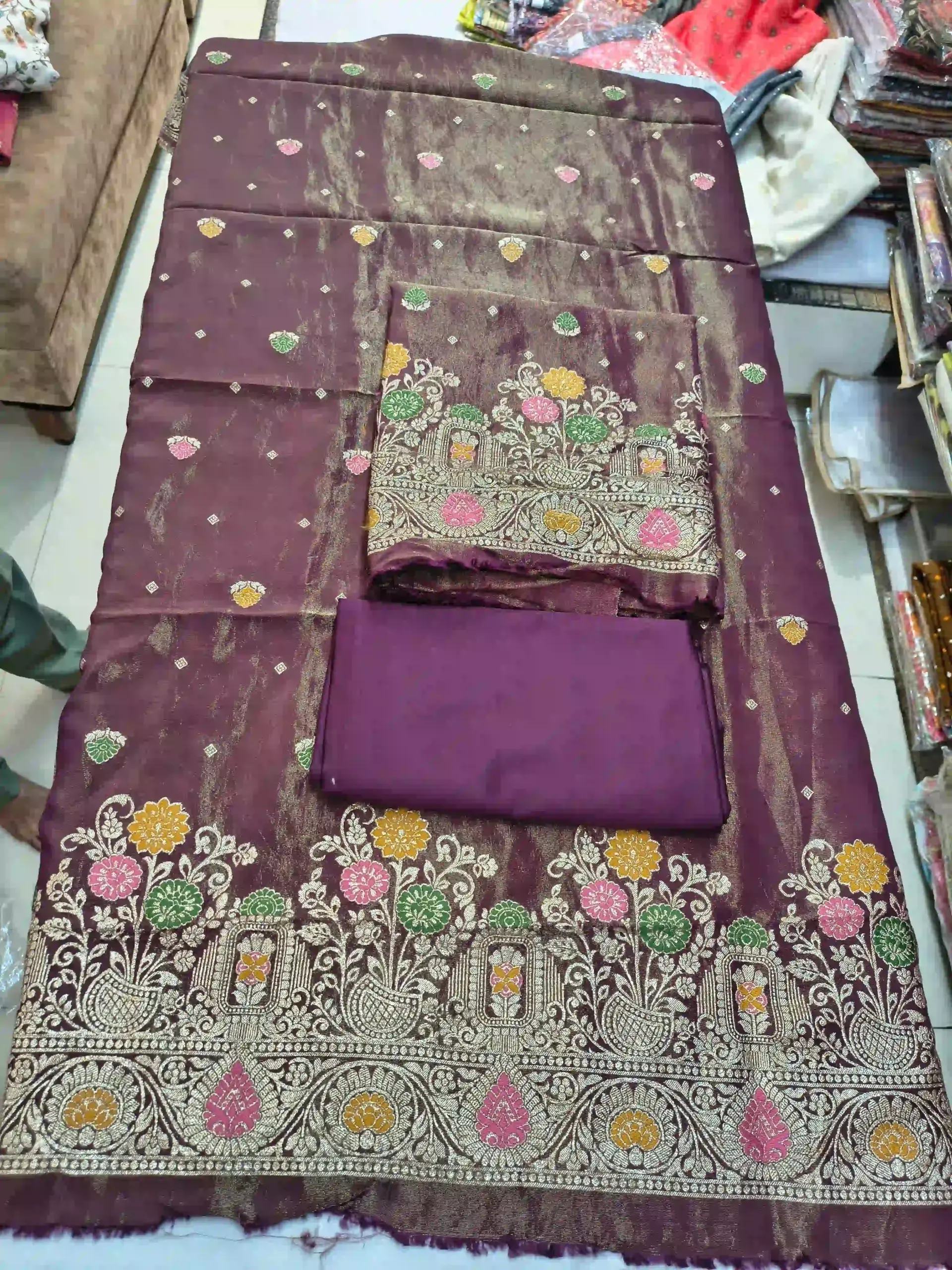 1 Unstitched Kurta Fabric (Tissue Silk with Meena Work)